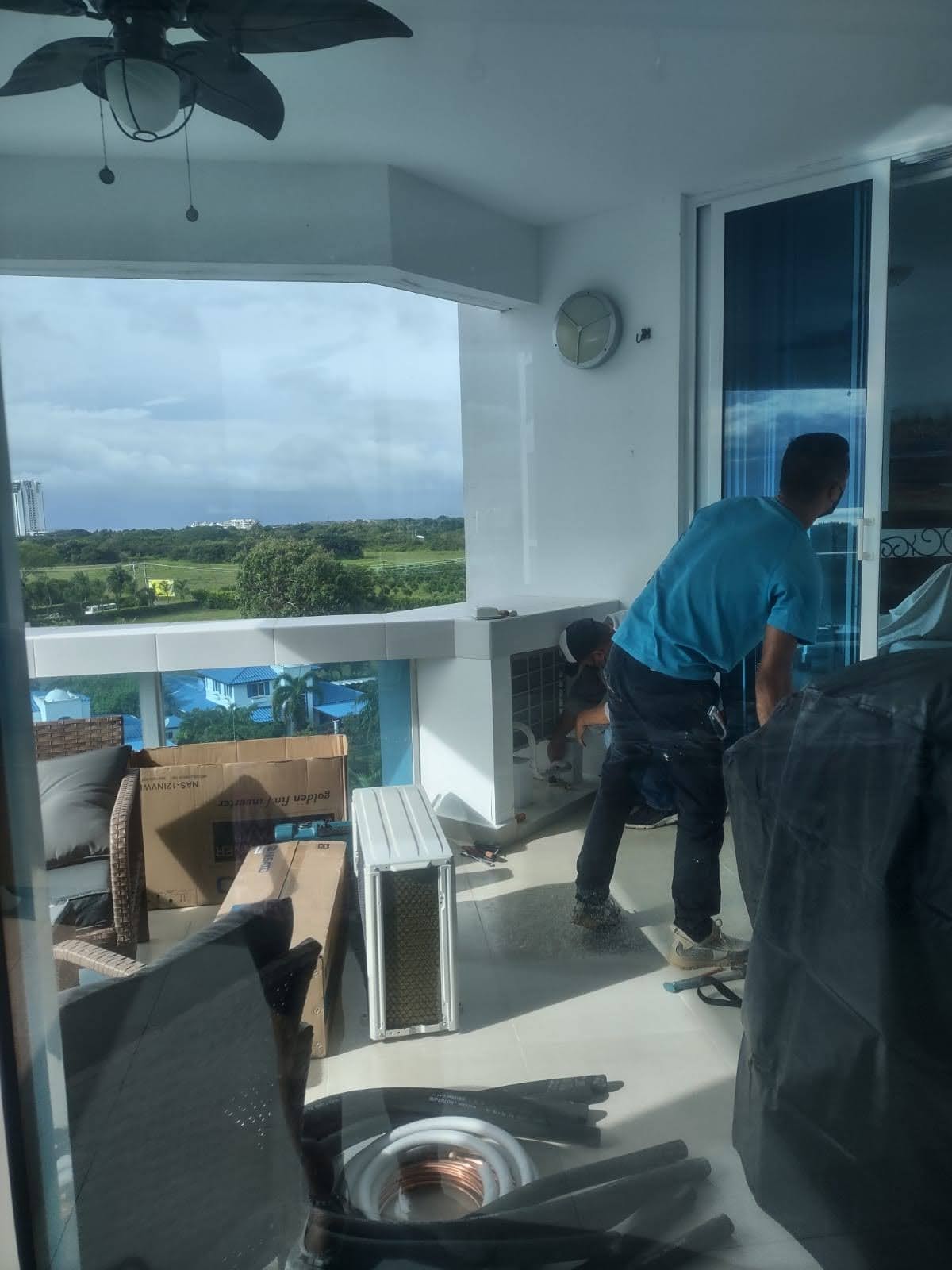 Javier and our team of workers removed the tub from the master bathroom (left) and put in beautiful glass block and new tile in both bathrooms. We got a new washing machine, had new toilets installed as well as one ceiling fan in our master bedroom and one on the terrazza. On top of that we had 3 new air conditioners put in. We are almost done now, with the retile of the terrazza being the main project remaining.