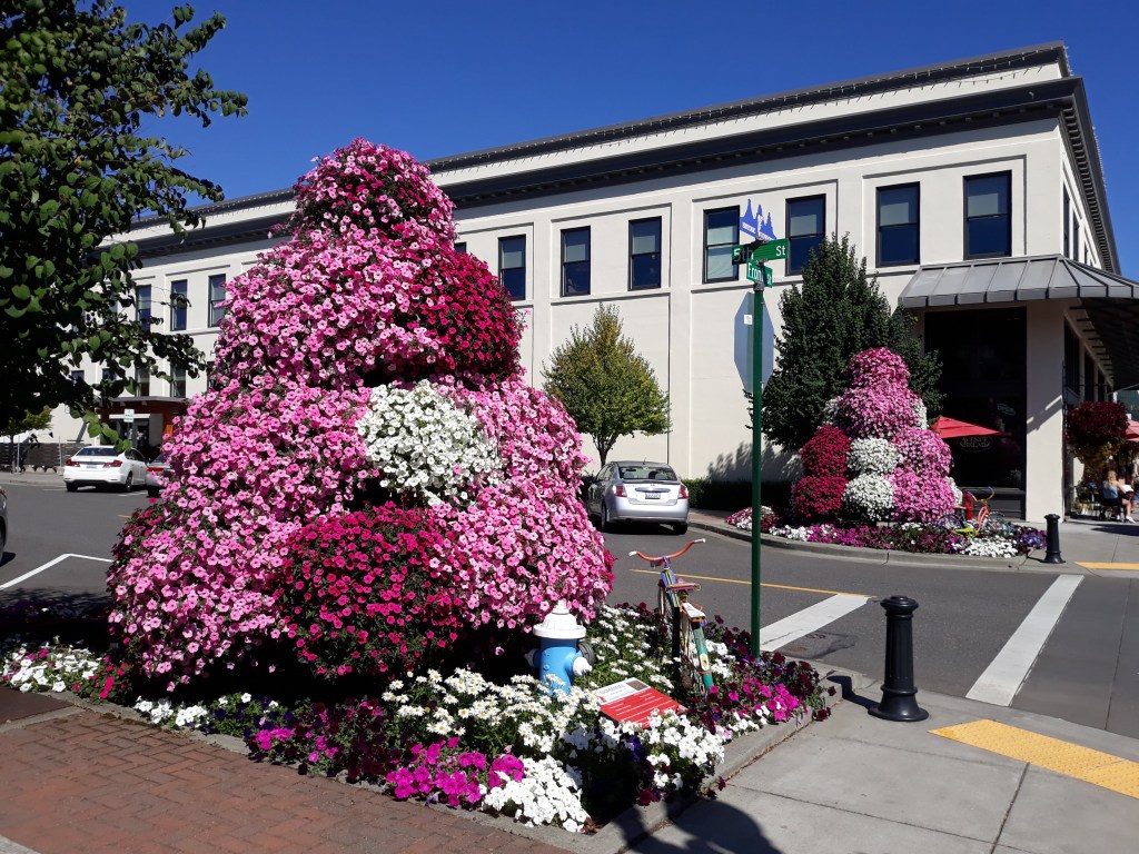 Lynden is a quaint Dutch town, 5 miles from the Canadian border, which has been closed our entire visit. It is a short 1 mile walk into town, mostly on a trail. On the way into town, there is a cute Hobbit House and a park.
