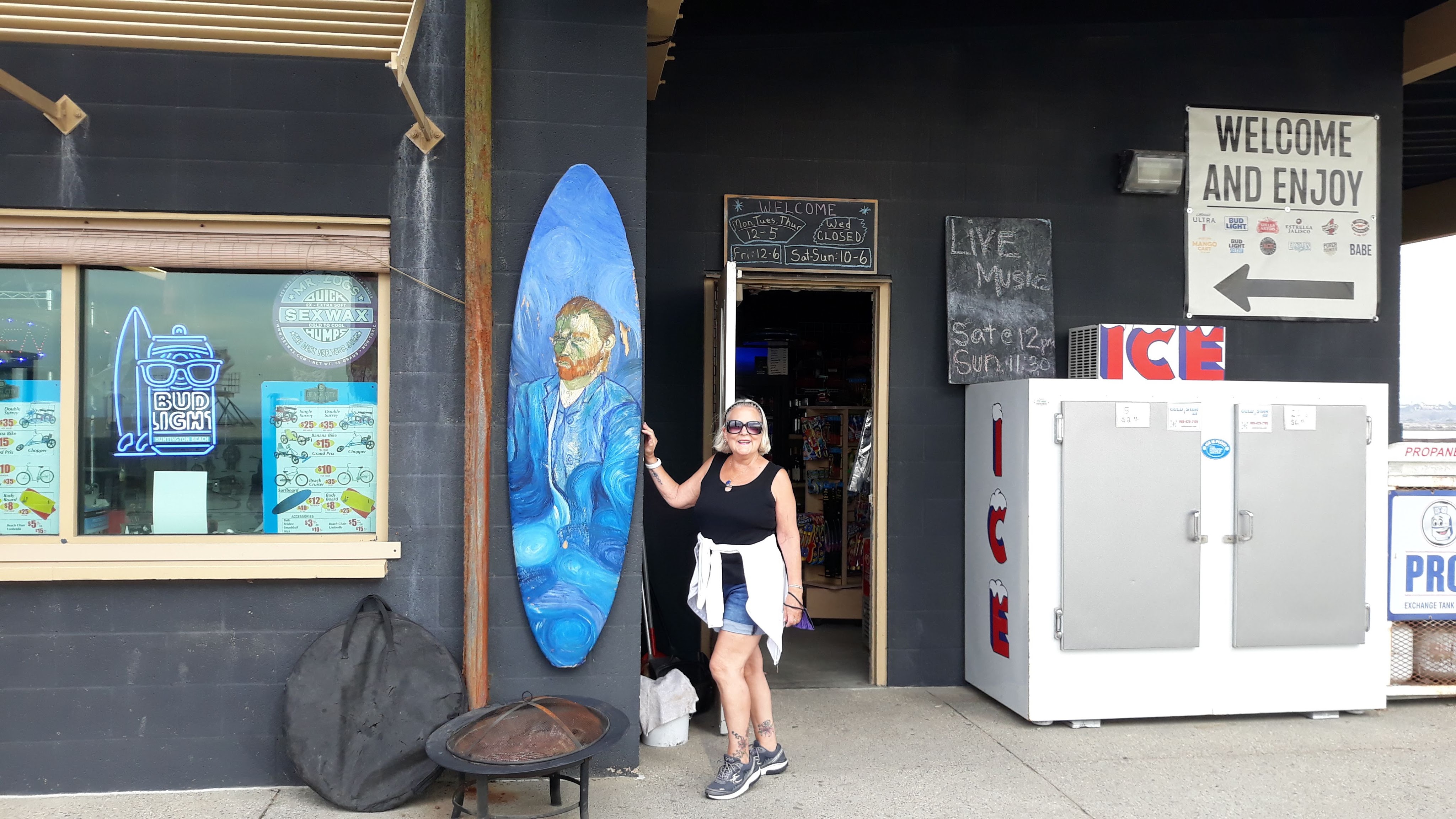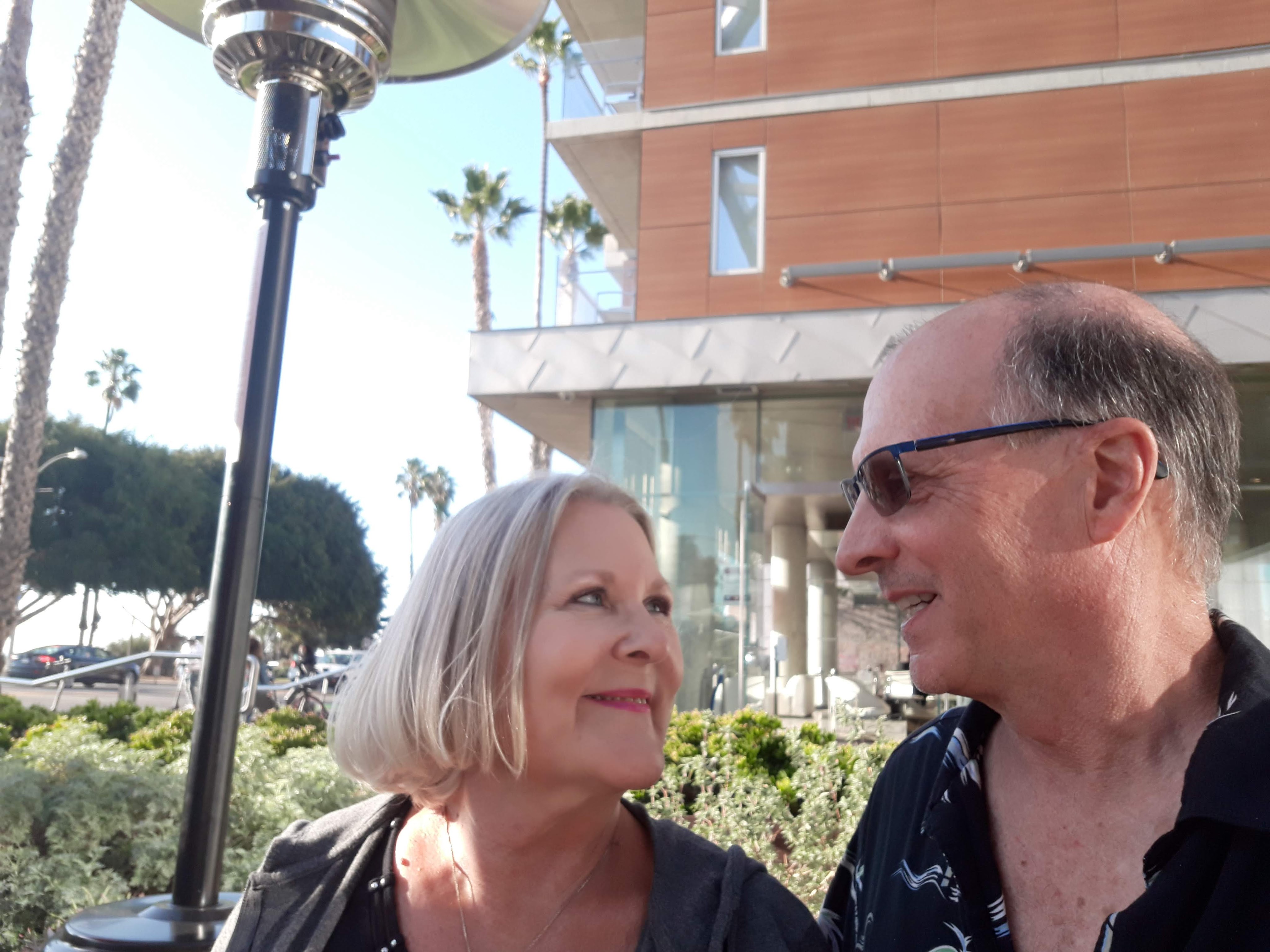 Our hosts, Mark & Arlene. Huntington Beach boardwalk.