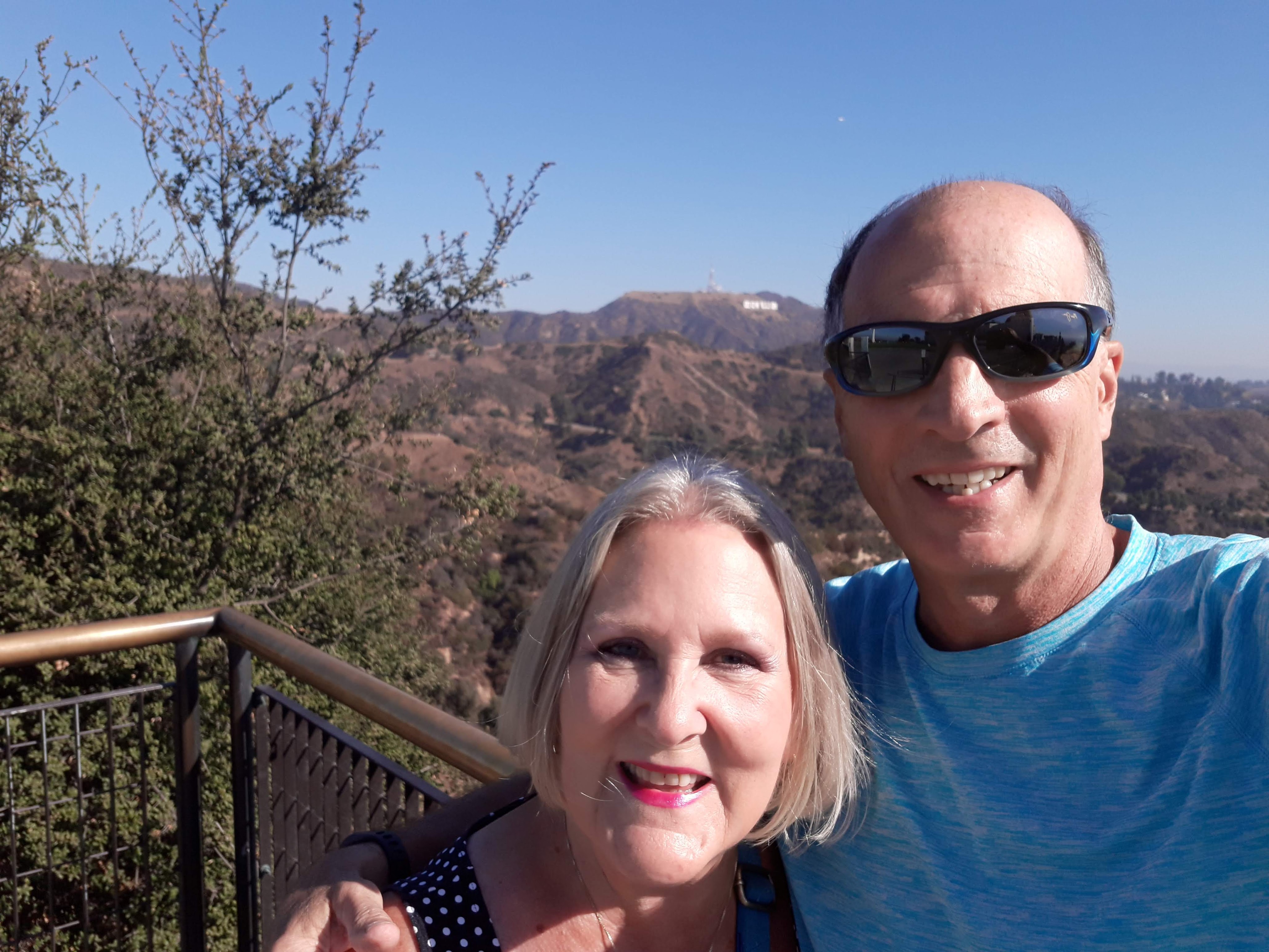 Hollywood sign way in the background.